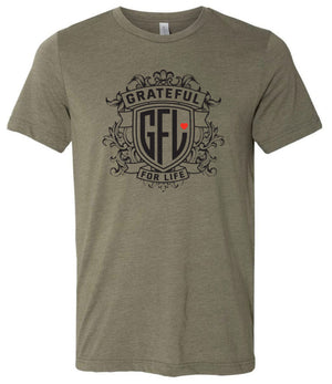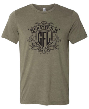 Our GFL crest tee is cool and comfy with a strong display of a mindset that not only lets people know you are Grateful For Life but it’s also reminding everyone else to be GFL too.